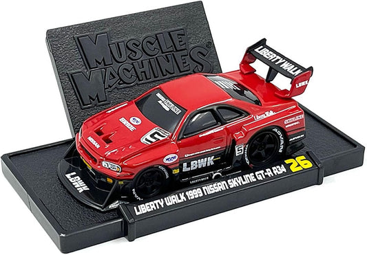 1999 Skyline GT-R (R34) #5 "Liberty Walk Red and Black 1/64 Diecast Model Car by Muscle Machines