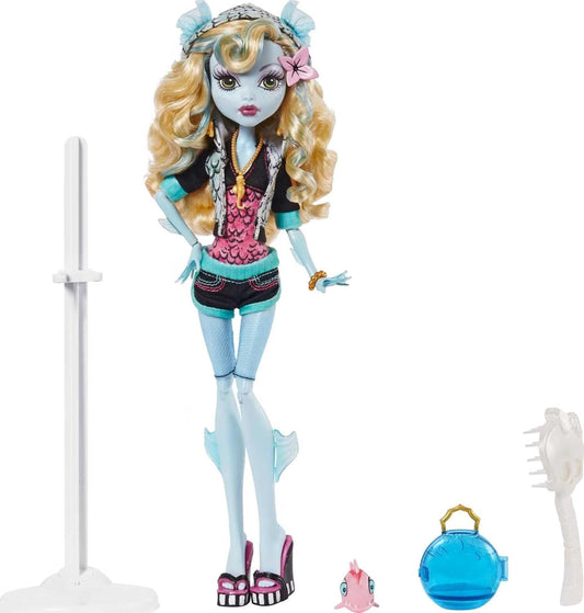 Monster High™ Lagoona Blue Reproduction Doll (10.5 in) Wearing Original Fashion & Shoes, with Pet, Doll Stand & Accessories, Gift for Collectors