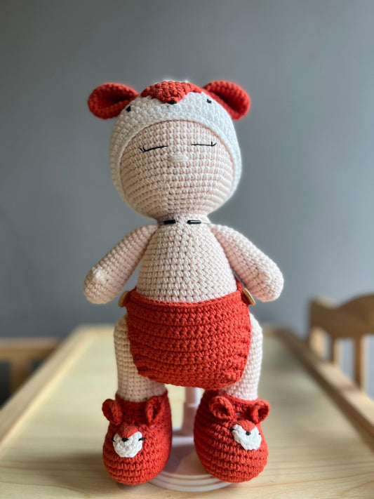 Crochet Cute Doll With Detachable Had With Orange Shoes And Eyes