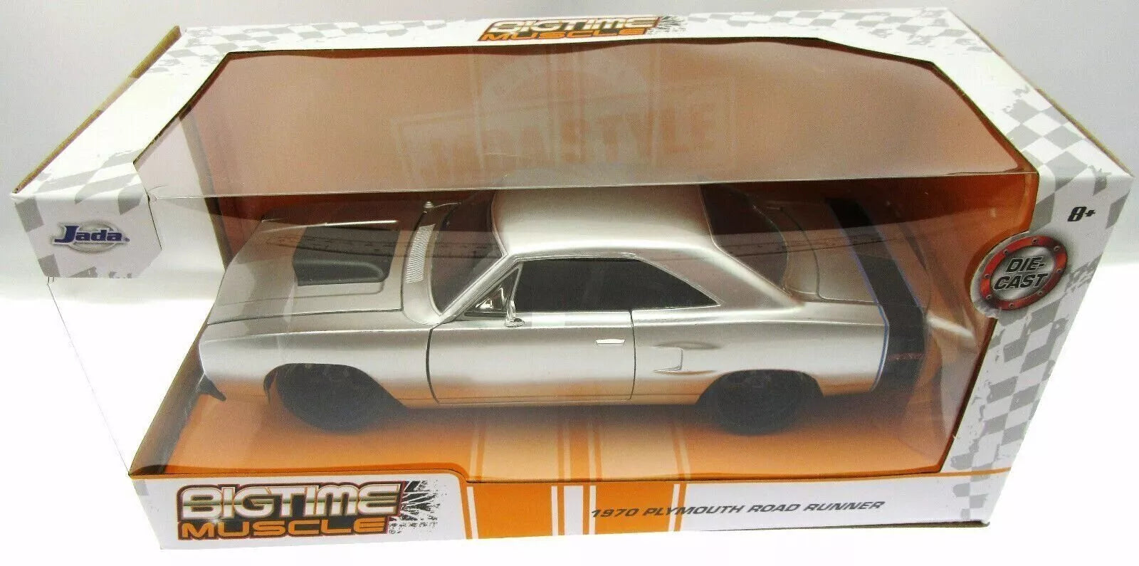 1970 Plymouth Road Runner ~ Die Cast Car ~ Bigtime Muscle ~ Silver ~ 1:24