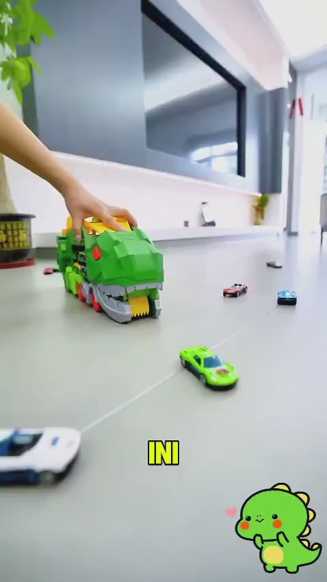 Multi-Functional Design: When pushing the dinosaur truck toy forward, it can eat up alloy cars along the way, and with an openable tailgate for these cars to escape. Additionally, the dinosaur truck can transform into a dual-track racing ramp, where children can place their alloy cars and engage in sliding races down the tracks.