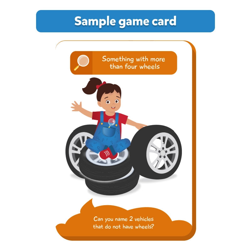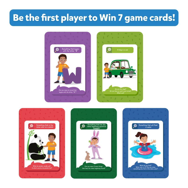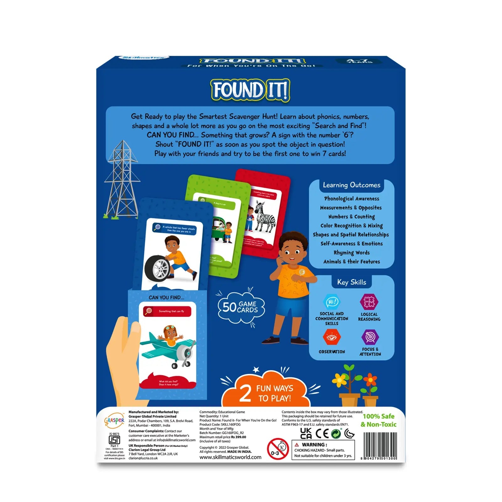 Found it! is an exciting game that helps children learn as they play the most exciting ‘Search & Find’! With prompts like “Can you find…"Something that grows? A sign with the number '6” etc.! Players must shout "FOUND IT!" as soon as they spot the object! The first one to win 7 cards wins the game!