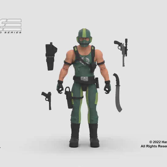 This Cobra Copperhead figure contains 4 character-inspired accessories including a machete, backpack holster, and weapon accessories; plus a footlocker to stow all his gear!