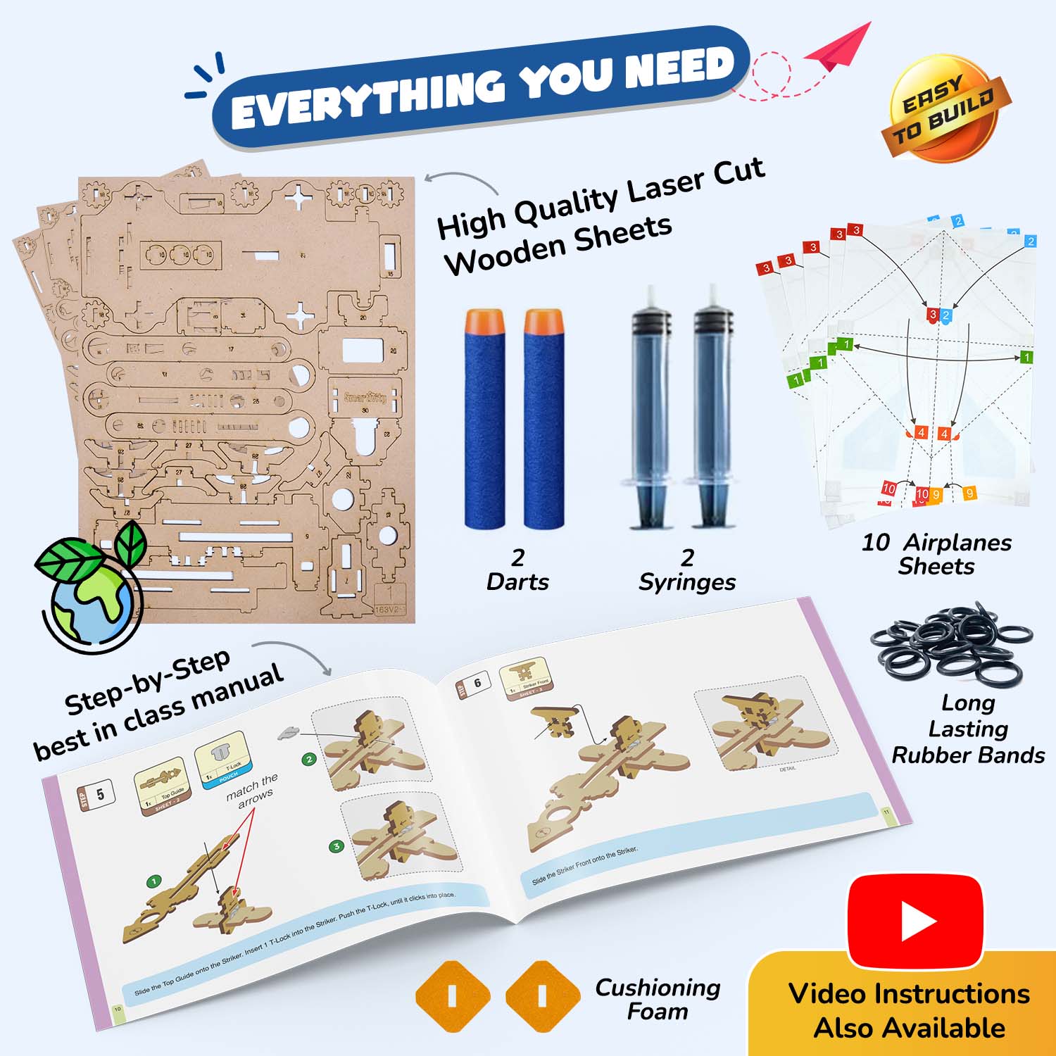 Witness your kid’s imagination soar with the Hydraulics Plane Launcher Toy. This is a complete DIY toy based on STEAM concepts to imbibe the right learning skills and teach kids the basics of hydraulics. Trust us when we say your kid will have too much fun with this one!