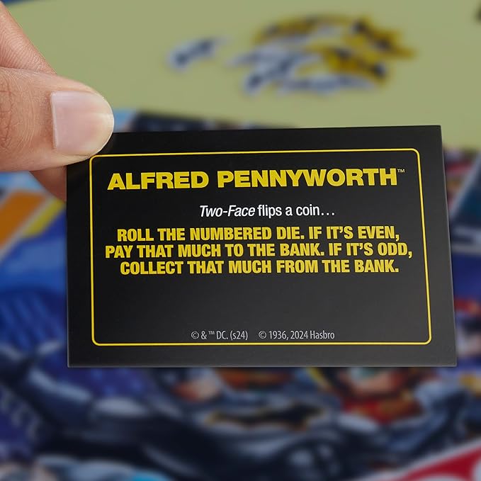 3) GAMEBOARD FEATURES FAMOUS VILLAINS: In this edition, villains replace properties and Calling Cards replace Title Deeds. Travel the board using batarangs to capture villains, like Harley Quinn and The Joker.