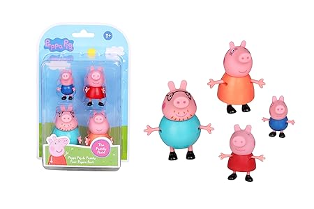 4 PEPPA PIG FAMILY FIGURES: Peppa and her family love to play! The whole family is here, including Mummy Pig, Daddy Pig, George Pig, and Peppa herself