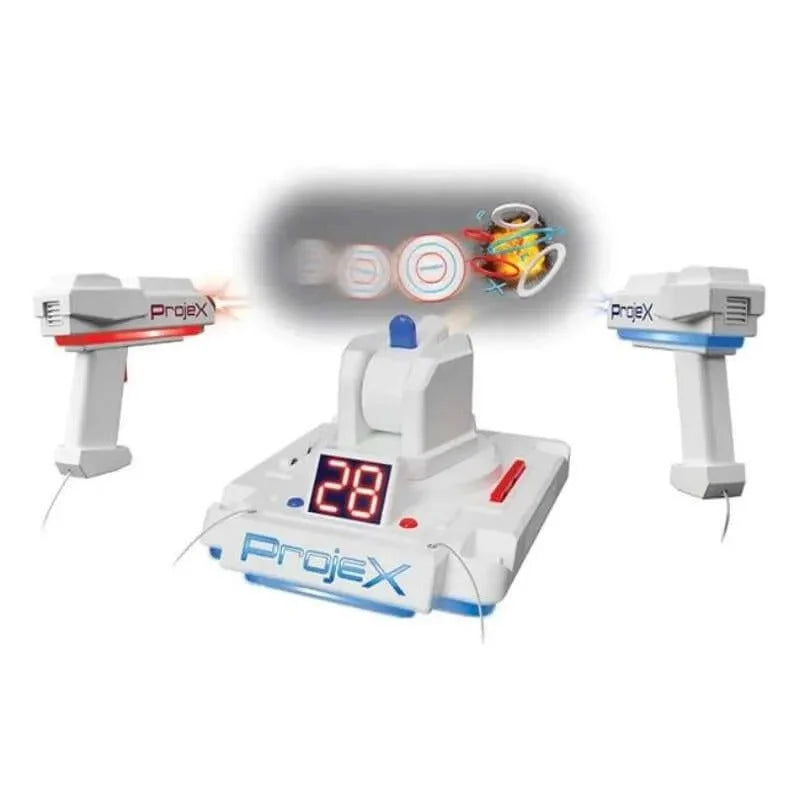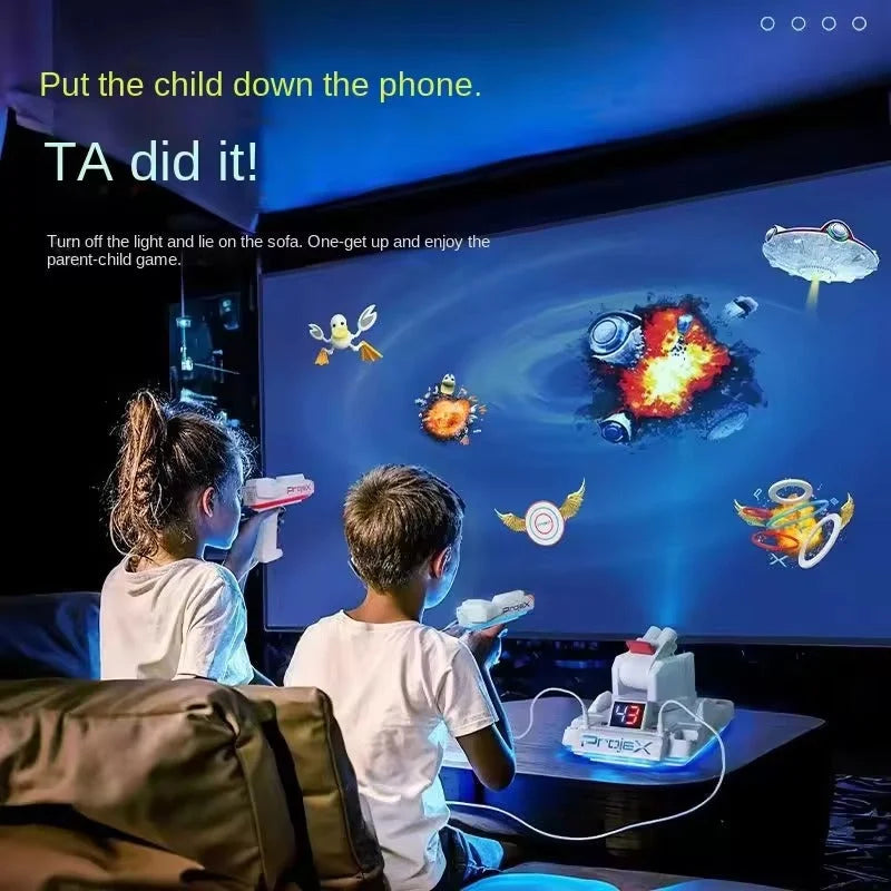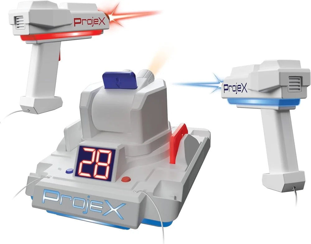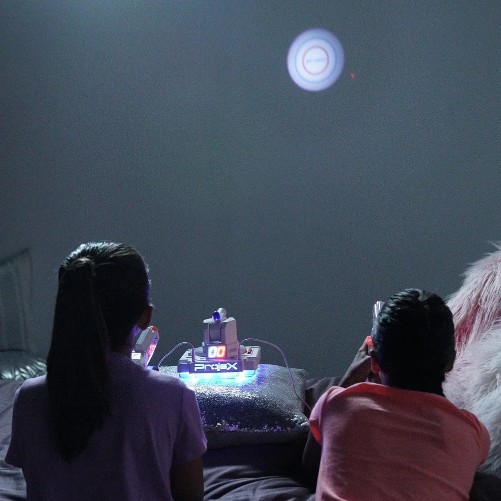 Projex is the Projecting Arcade Machine that projects moving targets that you can blast on any light colored wall. Choose from 5 different games and 3 different skill levels. Blast Targets, UFO's or Ducks. One or two players can play.