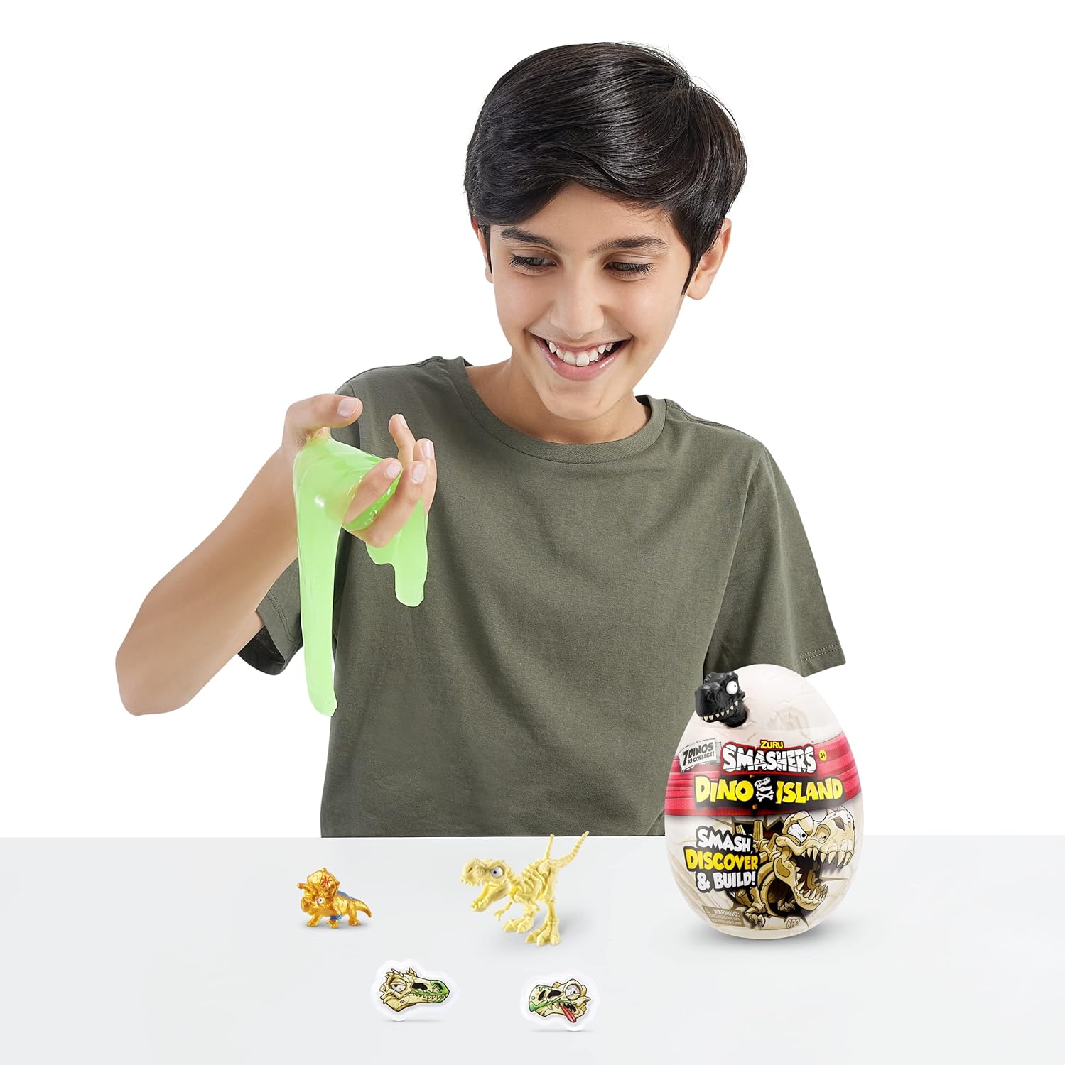 Smashers Dino Island Nano Egg by ZURU with 6 Hidden Surprises, Mini and Dinosaur Toy, Prehistoric Discovery Slime More,Color May Vary