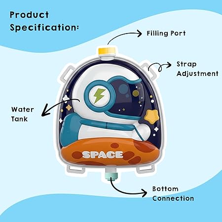 Make playtime more exciting with this adorable Space-themed backpack water gun! Have a blast outdoor with the water gun toy! Bring the fun with you with this water gun for endless water-blasting fun