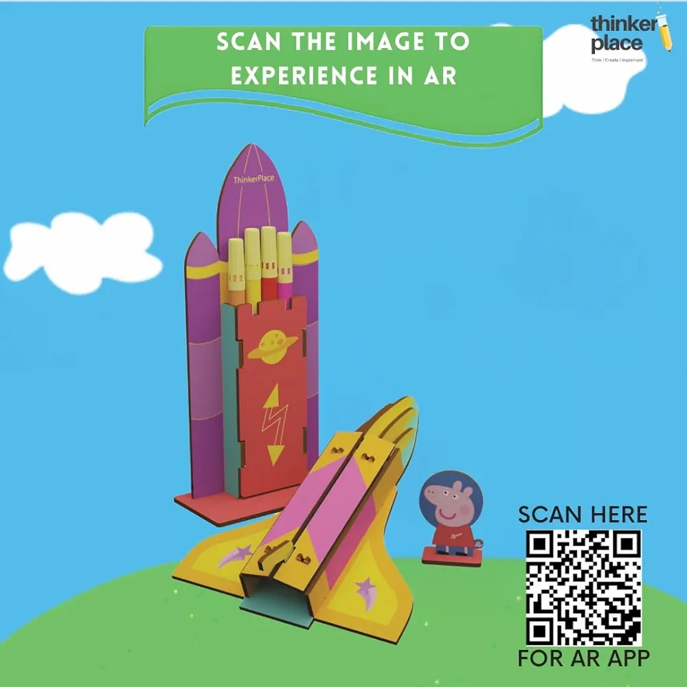 4) Immersive Augmented Reality (AR) Experience: Download the ThinkerPlace app to bring the space shuttle pen stand to life with an exciting AR experience. Kids can see their creations in 3D and interact with them on their mobile devices, adding an extra layer of fun to their learning experience.