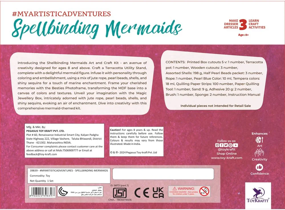 TOYKRAFTT 3-in-1 Craft Kit for Kids| Mermaid themed Kit