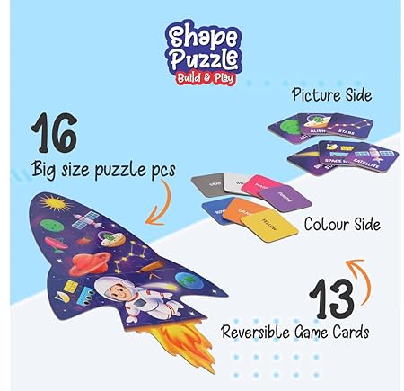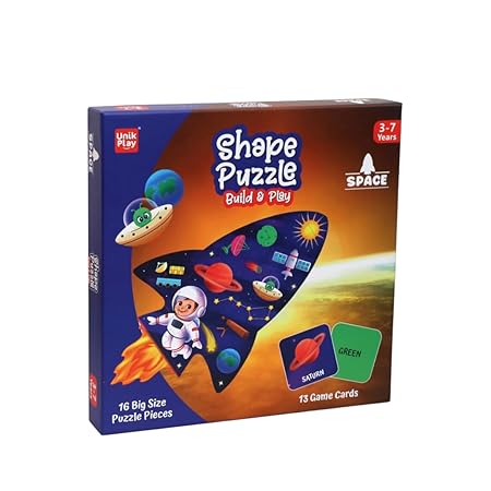1) Shape Puzzle: The Unikplay Shape Puzzle Game features 16 big pieces that come together to form a vibrant and colorful shape, sparking creativity and fun for kids aged 3-7.