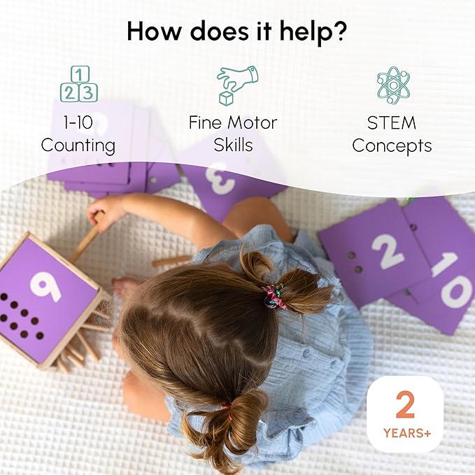 4) INTERACTIVE & ENGAGING PLAY: Indulge in an engaging play experience with our Montessori counting toy. Once the pegs are inserted, pull the dowel and make them fall.