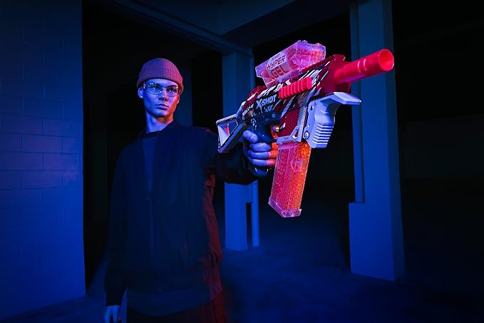 It's time to get hyped up with X-Shot Hyper Gel! The X-Shot Hyper Gel Trace Fire can blast Hyper Gel Pellets at 170 feet per second with its motorized fully and semi automatic modes. The Trace Fire has a 600 Pellet capacity hopper, when you run out of Gel Pellets simply flip your blaster to reload from the 850 Pellet capacity mag. This motorized Gel Blaster comes with a rechargeable battery. Stocked with 10,000 Hyper Gel Pellets and protective eyewear, just add water to start the ultimate Gel Blaster battle!
