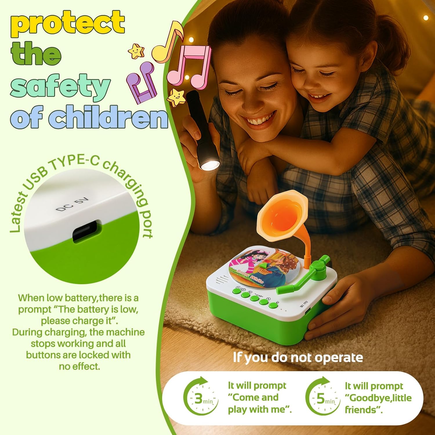 yimido Kids Phonograph Toddler Record Player, with 96 Learning Cards, Early Education Machine Record Player Music Box Storyteller pop Speakers, Gift for Boys and Girls